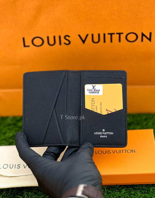 LV Black Embossed Genuine Leather Pocket Organizer/Cardholder