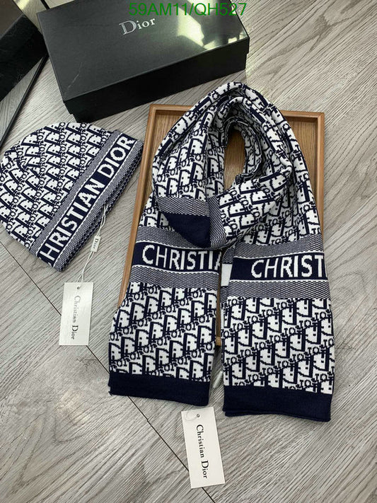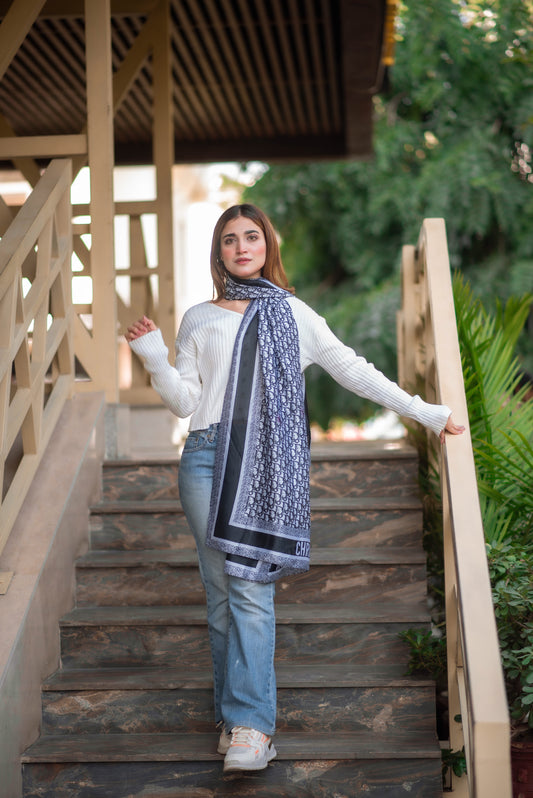 Dior Blue Printed Woolen Muffler & Beanie Set