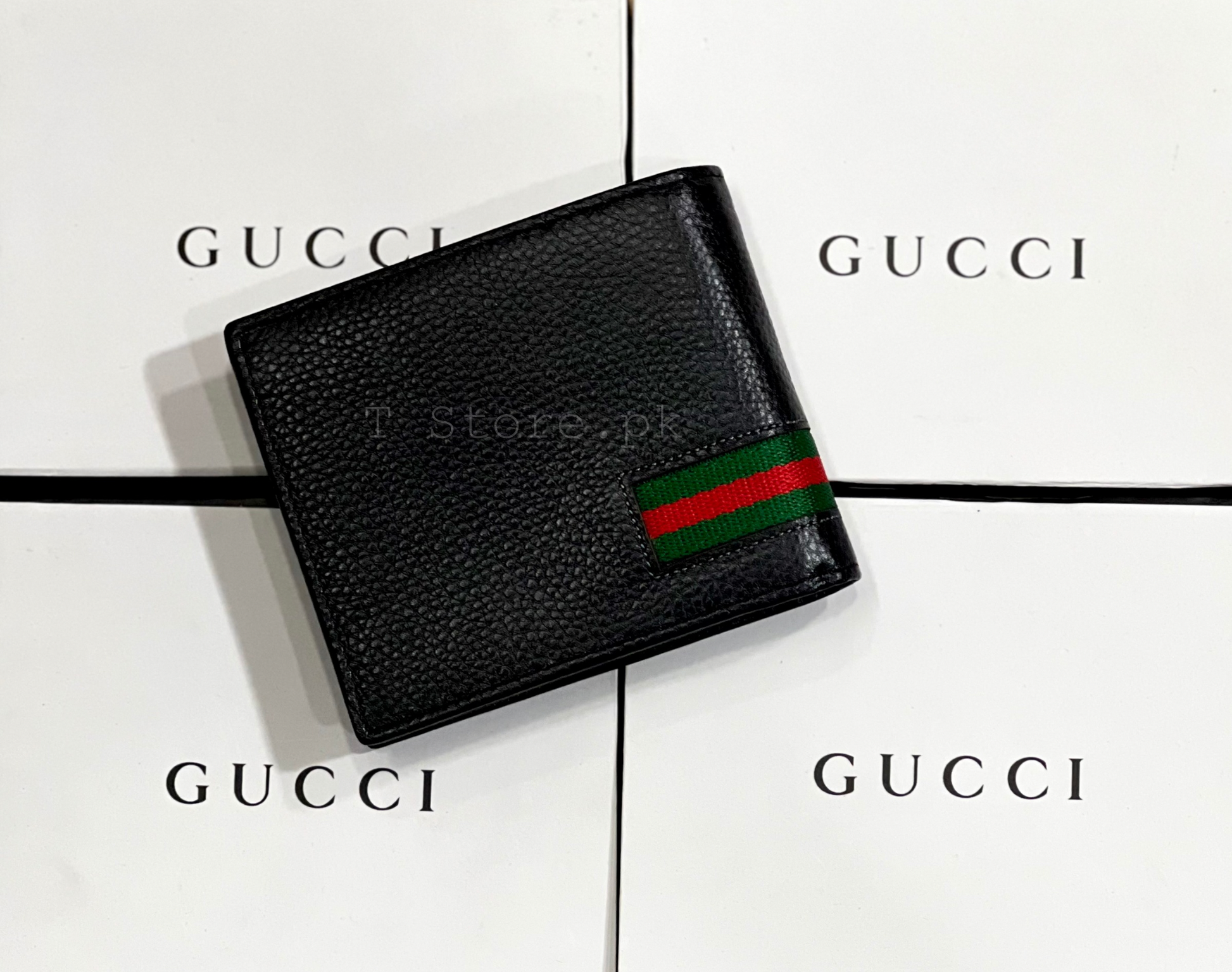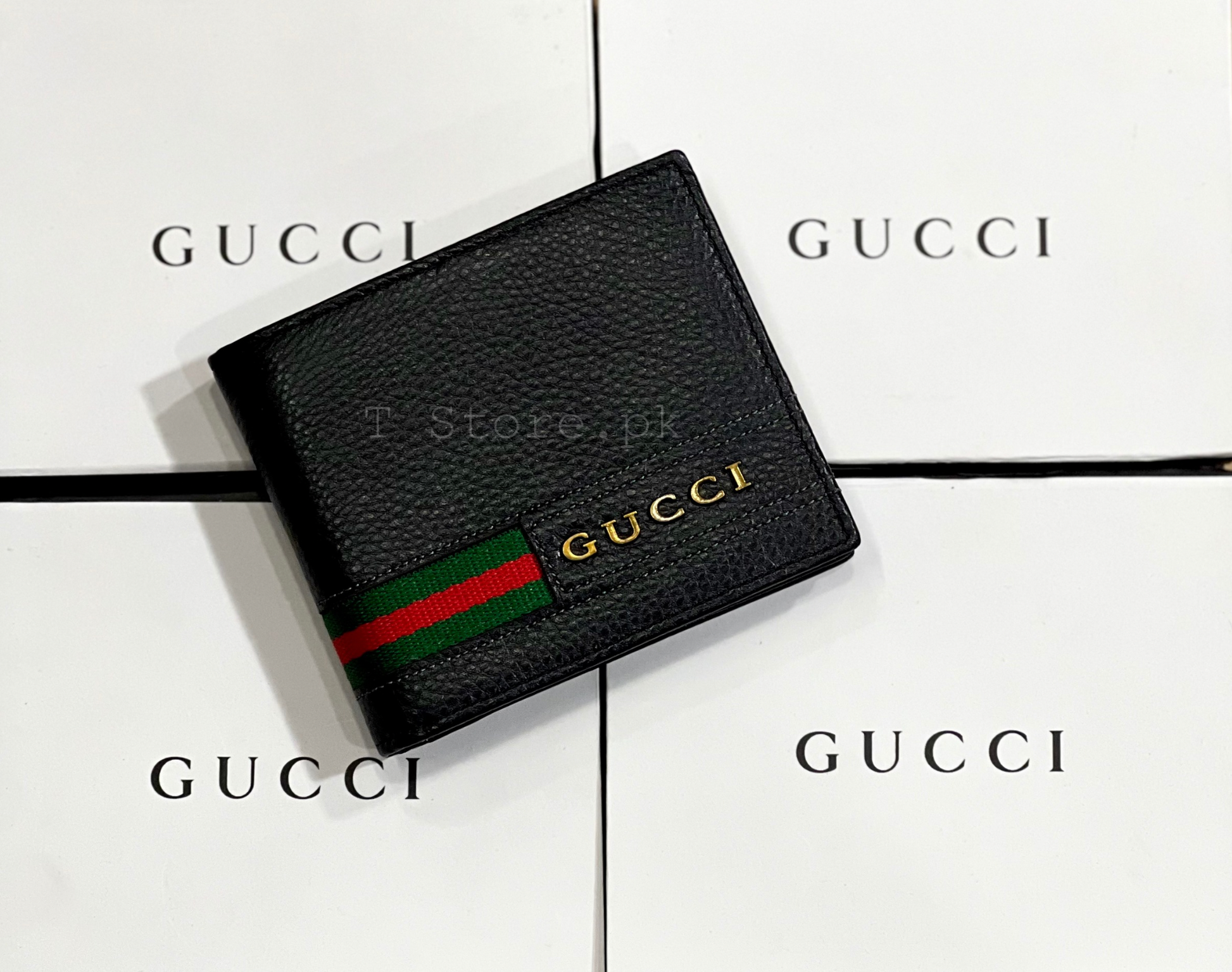 Gucci Black Plain Logo Strip Genuine Leather Wallet