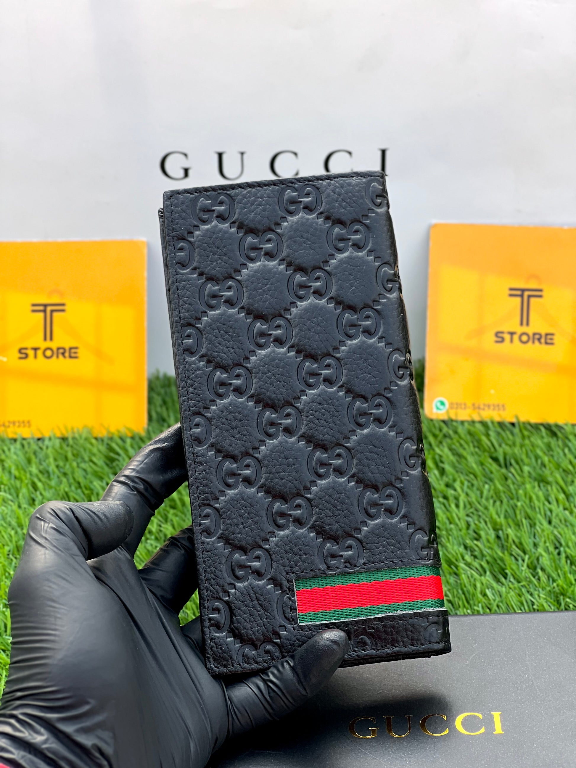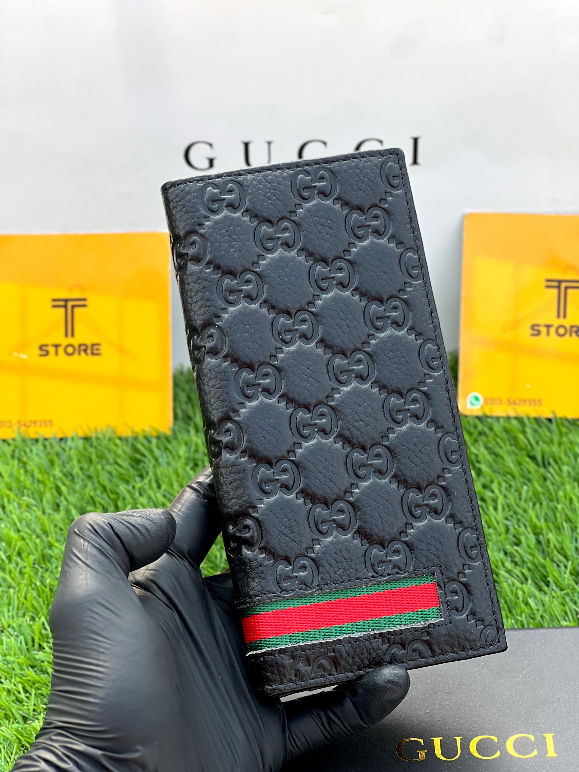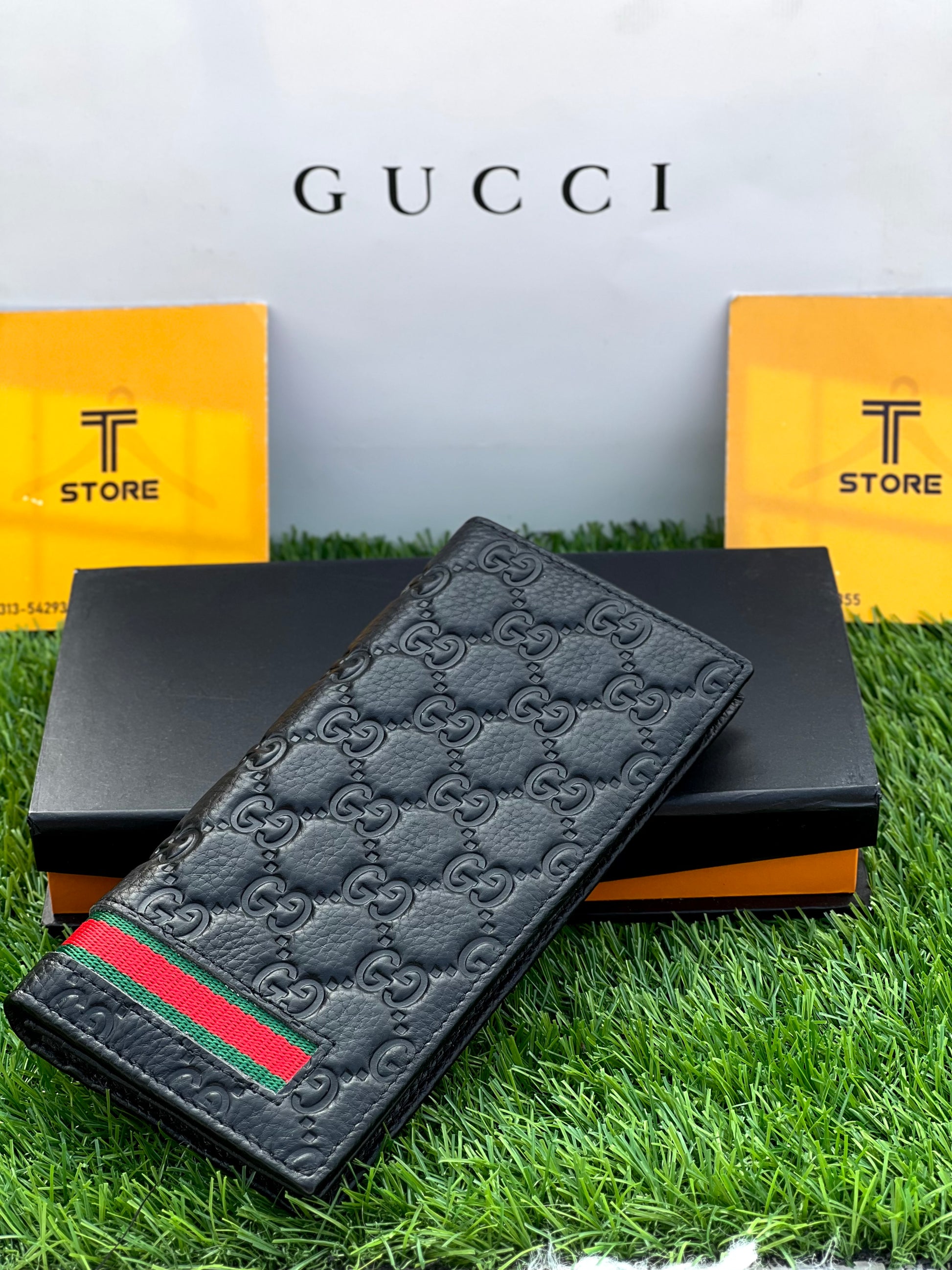 Gucci Black Strip Genuine Leather Long Wallet